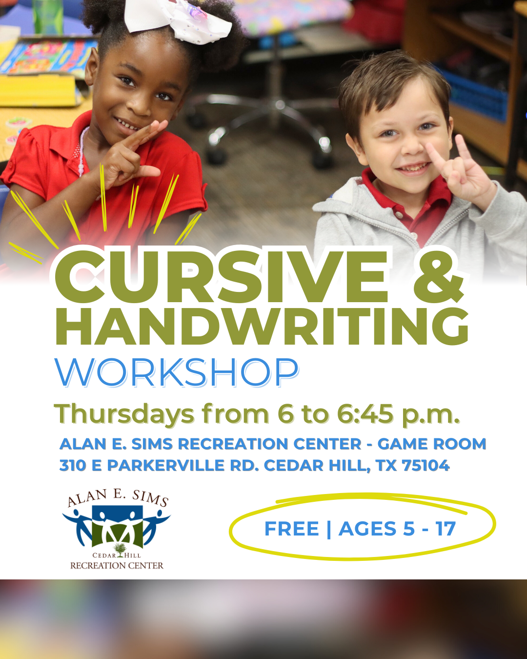 This engaging class is perfect for ages 5 to 17 and is designed to help kids and teens improve their handwriting, build confidence, and develop a skill they can be proud of. Whether your child is just starting out or looking to refine their penmanship, this workshop makes handwriting fun and rewarding.