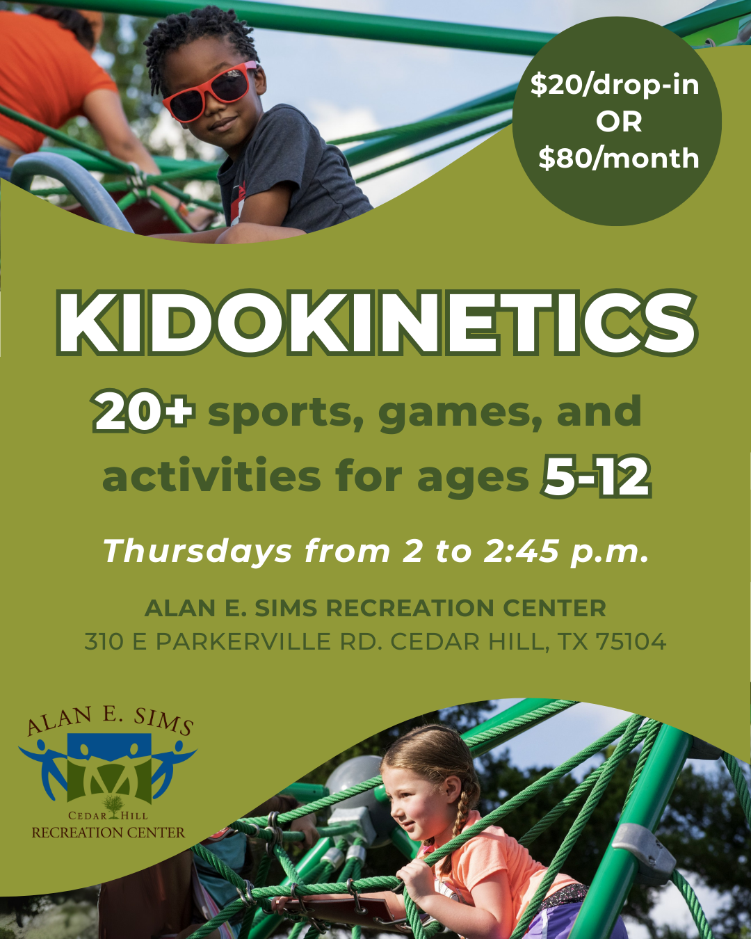 Kidokinetics classes are a fun and active way for kids ages 5 to 12 to move, play, and learn! Each week, children get to experience a rotating mix of more than 20 different sports, games, and activities, so there is always something new to try and enjoy.